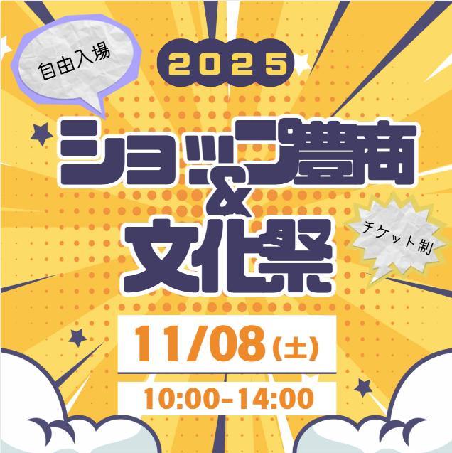 ※今年度のショップ豊商はフリー入場ですが、文化祭(生徒棟など)への入場は、一般・在校生家族は在校生が配布しているチケットが必要です。